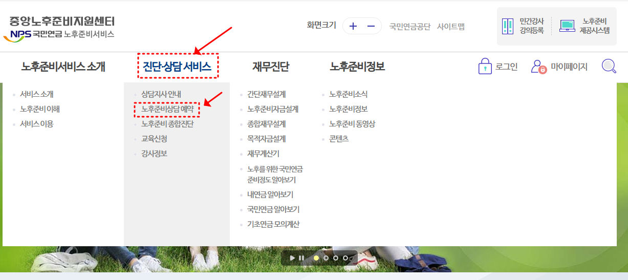 온라인 신청: 중앙노후준비지원센터 홈페이지에서 상담 예약과 노후준비 서비스에 대한 정보를 제공받을 수 있습니다. 이 홈페이지에서는 쉽게 신청할 수 있도록 가이드라인이 제공되므로, 온라인을 통해 빠르게 상담 예약이 가능합니다.